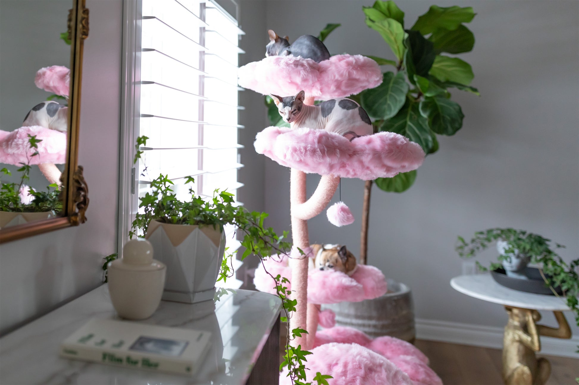 Eden is a one-of-a-kind cat tree that was designed to turn cat furniture into an artistic production. This cat tree will add a new level of luxury to your home decor. KBSPETS always makes sure to use exceptional hand-picked materials to ensure the comfort of your cat. We believe every cat deserves the luxury of comfortness.
