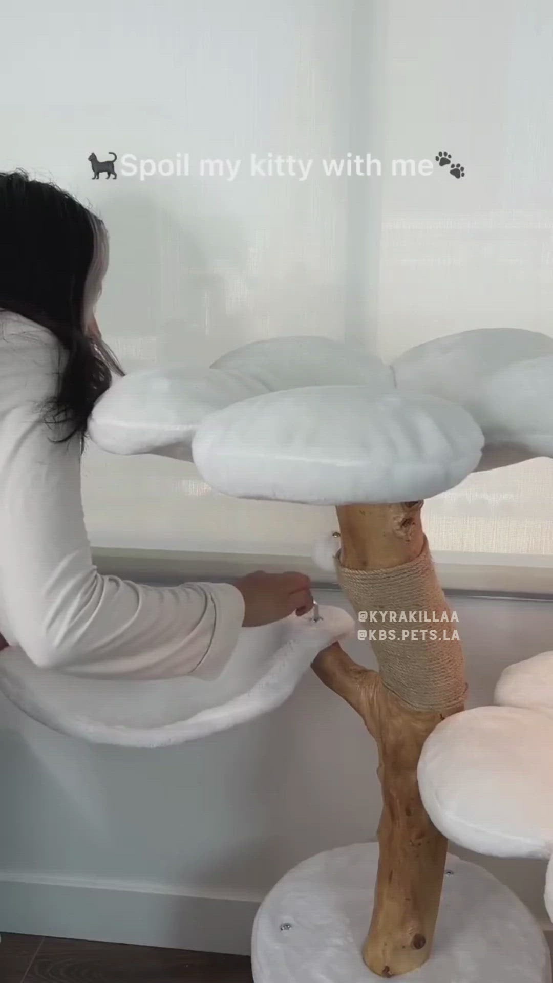 Description The KBSPETS Team is pleased to introduce you to our new Monochrome Collection! Featuring our Cozy Plush Blanc + Cozy Plush Noir, this collection will add a sense of class and luxury to your home. This modern floral design is hand-made with real natural, treated wood branches, two cozy blanc-designed flower cat beds, and one leaf design perch. It has an enclosed, private condo on the ground floor and two dangly pom-pom toys attached for playtime fun.